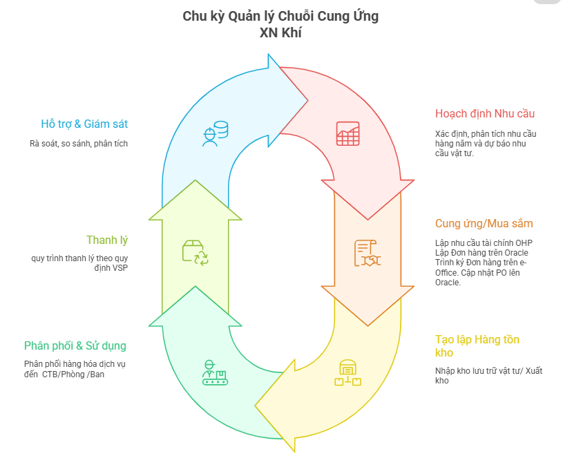 Thực hiện việc nâng cao hiệu quả quản lý chuỗi cung ứng vật tư trong Vietsopetro, ngày 14/10/2025, được sự đồng ý của Lãnh đạo XN Khí, Ban VTTB phối hợp với Phòng Cung ứng vật tư kỹ thuật (P.CUVTKT) Vietsovpetro và Trung tâm Công nghệ Thông tin (TTCNTT&LL) đã tổ chức buổi tọa đàm tại phòng 202 tòa nhà XN Khí với chủ đề “Các phương thức nâng cao quản lý và sử dụng hiệu quả vật tư VSP, áp dụng cho XN Khí thông qua QLVT_CTB & sử dụng Oracle mới” với sự tham gia của lãnh đạo và CBCNV Phòng Kế toán, Ban VTTB, Giàn nén Khí Trung tâm (GNTT), Giàn nén khí Nhỏ (GNN), Giàn nén khí Rồng (GNR).