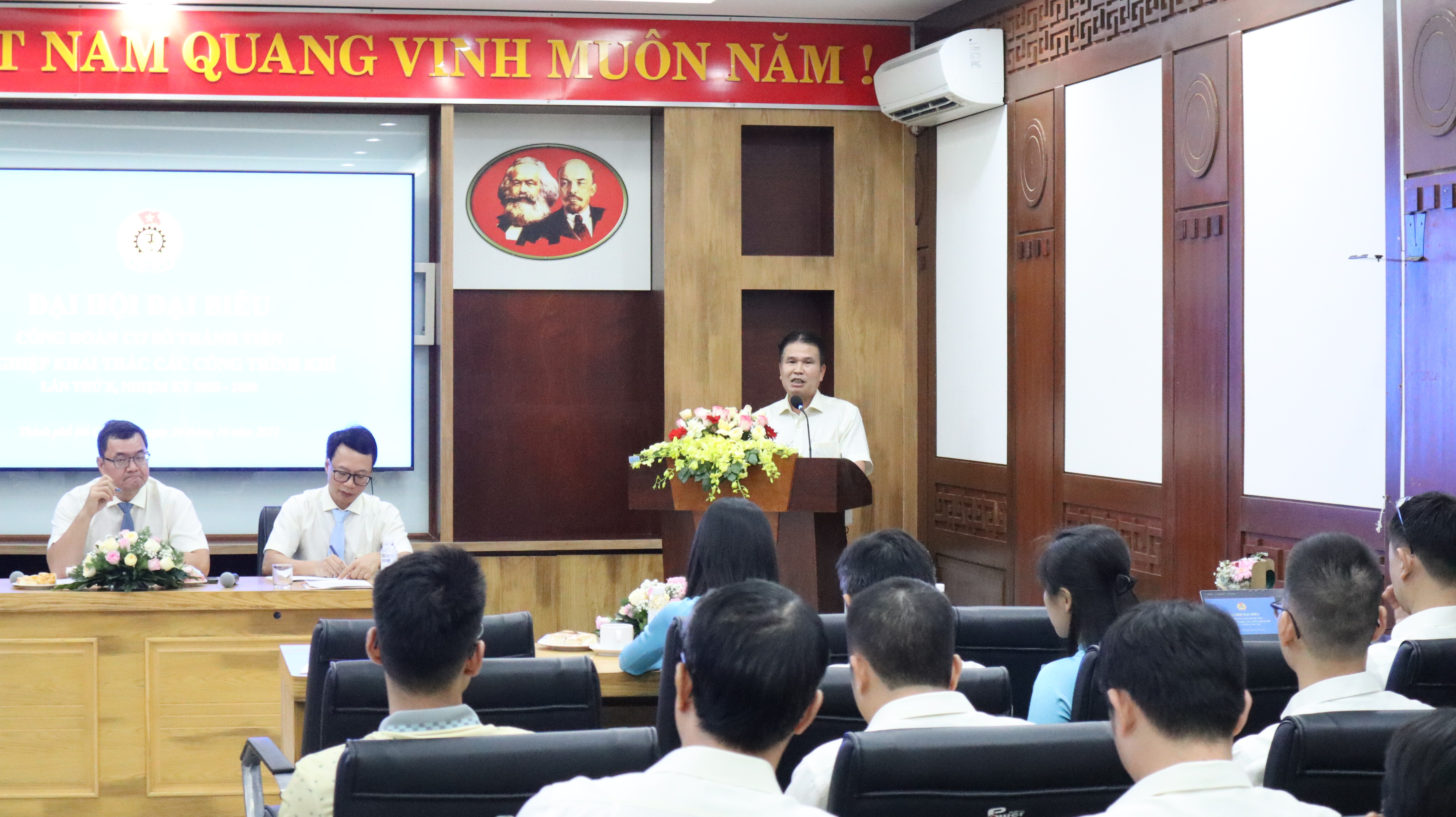 Phát biểu tại Đại hội, đồng chí Hoàng Phúc Long – Chủ tịch Công đoàn Liên doanh Vietsovpetro – ghi nhận những thành tích của Công đoàn XN Khí đã đạt được trong nhiệm kỳ 2023 – 2025 vừa qua. Mặc dù số lượng CBCNV của XN Khí không nhiều với ba công trình biển, tuy nhiên, các hoạt động của Công đoàn XN Khí luôn nhận được sự hưởng ứng nhiệt tình và tham gia đông đảo của người lao động. Công đoàn XN Khí với đội ngũ Công đoàn viên trẻ, Ban Chấp hành nhiệt huyết đã luôn là một trong những đơn vị dẫn đầu Vietsovpetro trong các hoạt động phong trào. Đồng chí tin tưởng, trong nhiệm kỳ tới, Công đoàn XN Khí sẽ tiếp tục phát huy lợi thế của một tổ chức công đoàn trẻ, nhiệt huyết, gắn bó với người lao động, giữ vững phong trào thi đua, tiên phong, hiệu quả và là đơn vị dẫn đầu trong phong trào Công đoàn Vietsovpetro.