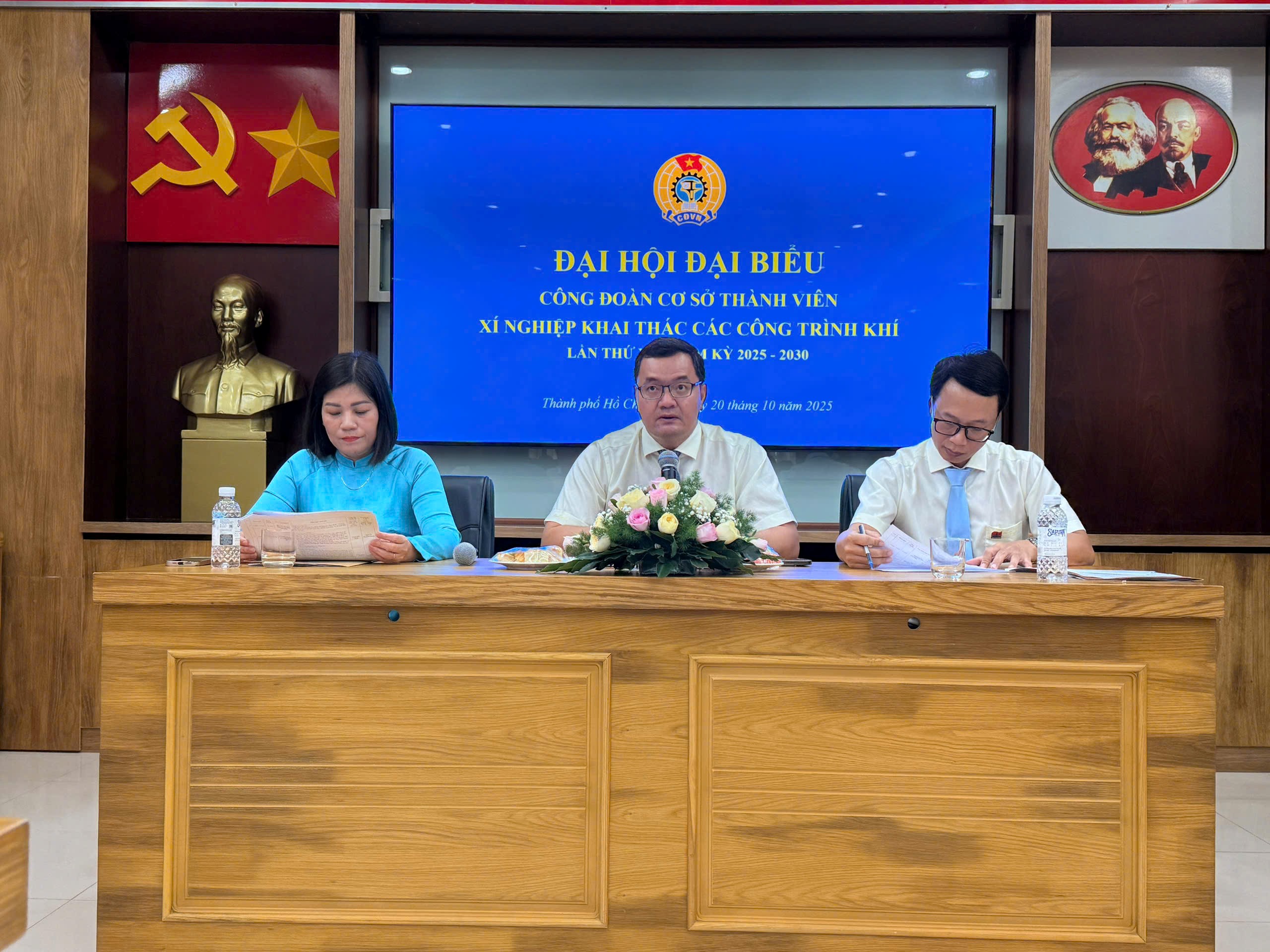 Thực hiện Kế hoạch số 04/KH-CĐVSP ngày 15/9/2025 của Công đoàn Liên doanh Vietsovpetro về việc tổ chức Đại hội các cấp tiến tới Đại hội Công đoàn Vietsovpetro lần thứ XIV, nhiệm kỳ 2025 – 2030 và Đại hội Công đoàn Tập đoàn Công nghiệp - Năng lượng Quốc gia Việt Nam lần thứ VIII, nhiệm kỳ 2025 – 2030, được sự đồng ý của Đảng ủy Xí nghiệp Khai thác các công trình Khí (XN Khí), Công đoàn CSTV XN Khí đã tổ chức Đại hội Đại biểu Công đoàn CSTV Xí nghiệp Khai thác các công trình Khí lần thứ X, nhiệm kỳ 2025 – 2030 vào chiều ngày 20/10/2025, tại Hội trường P.202 tòa nhà điều hành XN Khí.