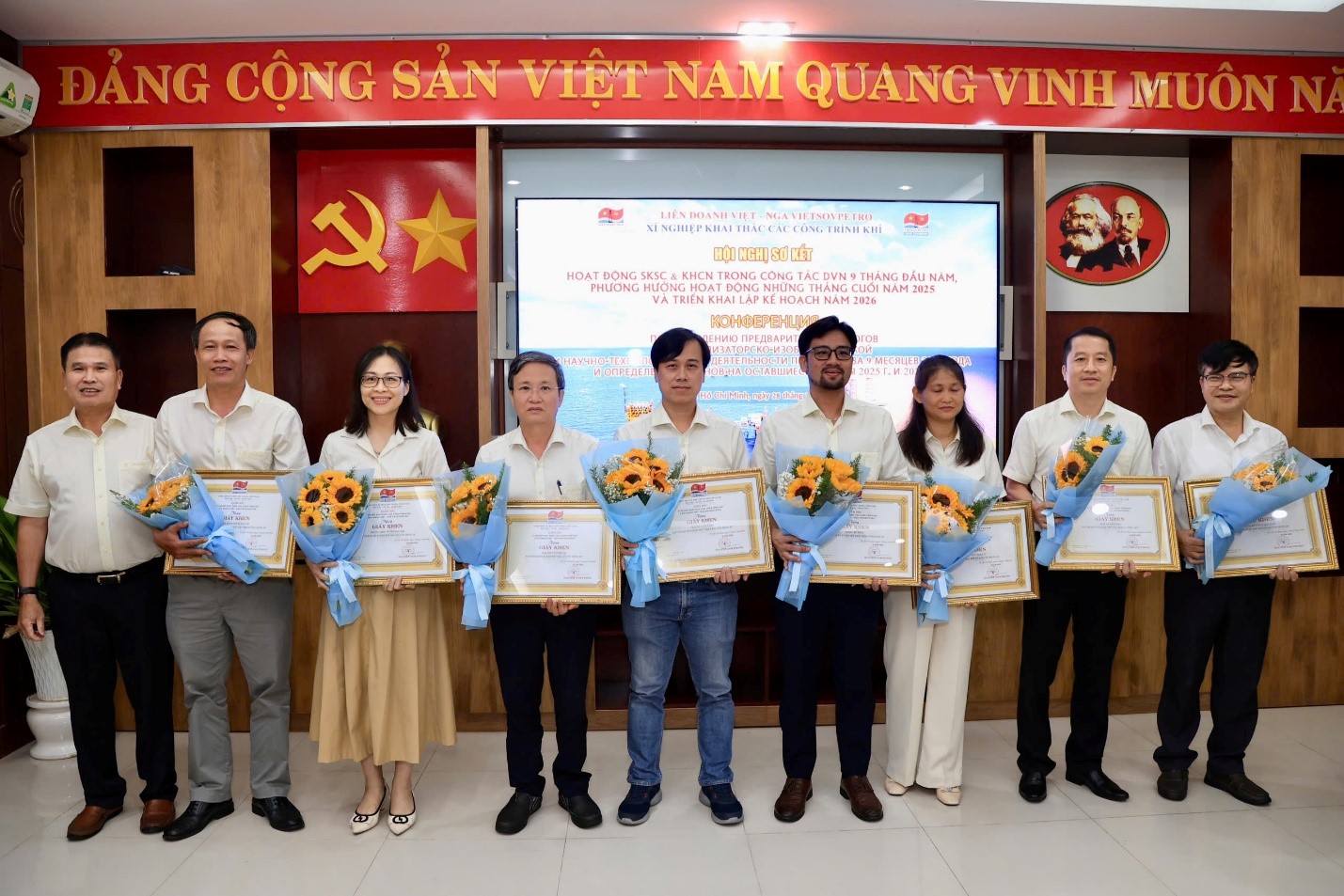 Hội nghị Sơ kết hoạt động SKSC-KHCN kết thúc sau gần 03 giờ làm việc nghiêm túc, hiệu quả và trách nhiệm. Qua Hội nghị, tinh thần sáng tạo đổi mới, thích ứng linh hoạt của người Vietsovpetro tiếp tục được khẳng định và lan tỏa mạnh mẽ trong toàn đơn vị. Những kết quả đạt được là minh chứng cho trí tuệ, bản lĩnh và quyết tâm nâng cao năng lực vận hành, tối ưu hóa hiệu quả sản xuất và đẩy mạnh chuyển đổi số tại XN Khí. Với sự chỉ đạo sâu sát của Ban Lãnh đạo và sự đồng lòng của tập thể CBCNV, phong trào SKSC-KHCN sẽ tiếp tục phát triển bền vững, tạo thêm nhiều dấu ấn trong năm 2026 và các giai đoạn tiếp theo.