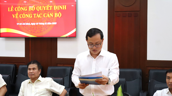 Đại diện Vietsovpetro, ông Bùi Anh Nam - Trưởng phòng TCNS đã công bố Quyết định số 142/QĐBN-NSV bổ nhiệm ông Nguyễn Dương Phúc giữ chức vụ Quyền Giám đốc XN Khí kể từ ngày 15/11/2025.