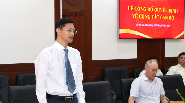 Hình 1: Ông Bùi Anh Nam – Trưởng phòng TCNS Vietsovpetro công bố Quyết định bổ nhiệm Quyền Giám đốc XN Khí