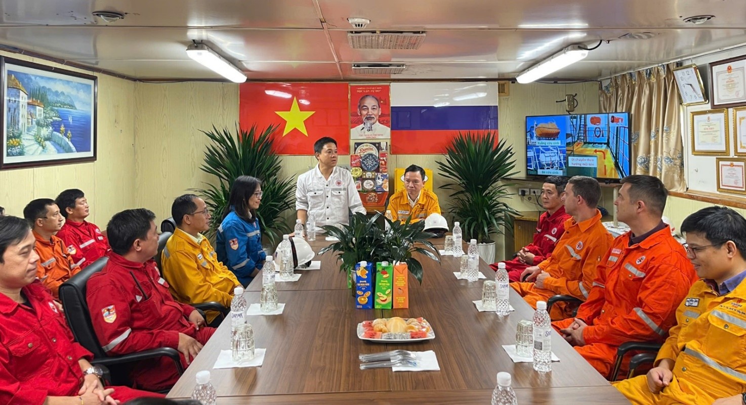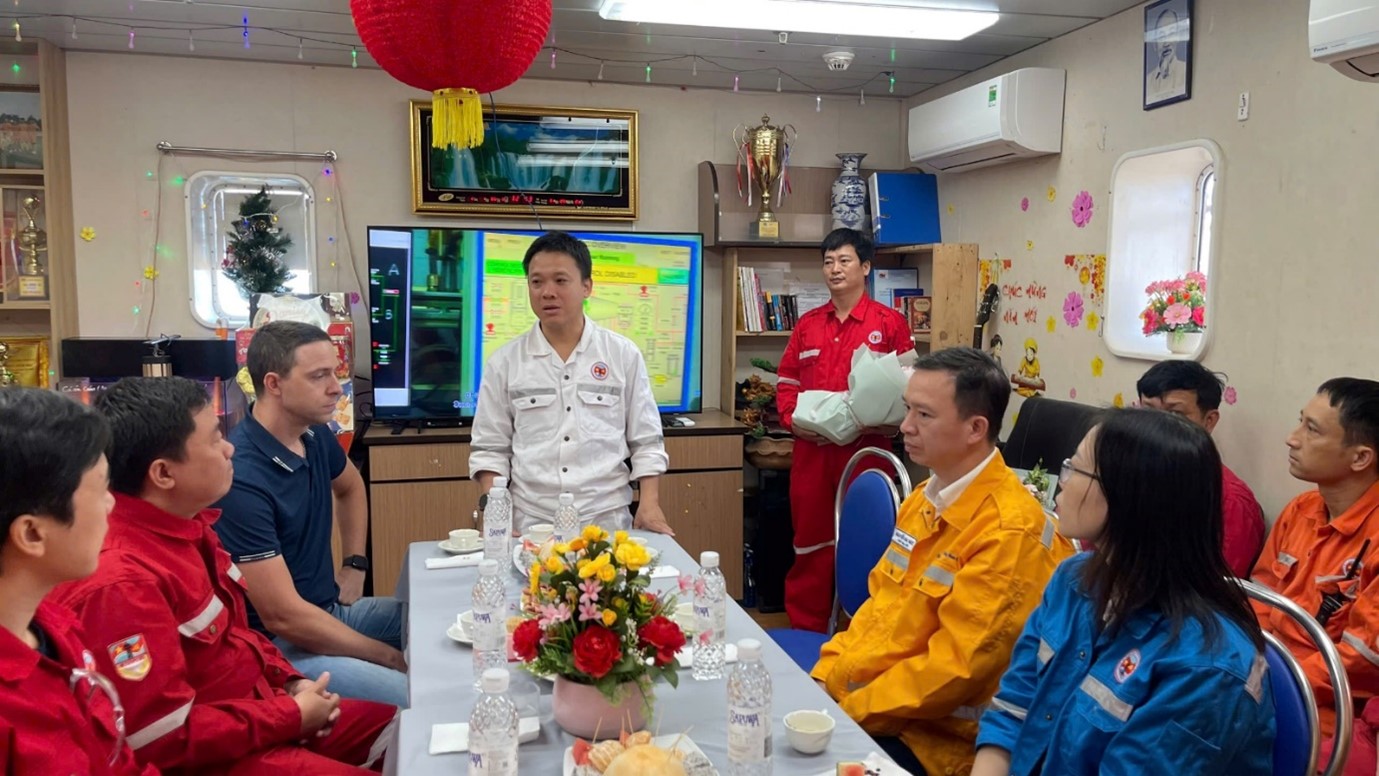 Giữa điều kiện thời tiết ngoài khơi khắc nghiệt, hành trình vượt biển để trực tiếp đến với CBCNV trên công trình biển mang ý nghĩa đặc biệt: đó là sự hiện diện kịp thời của lãnh đạo tại tuyến đầu sản xuất, là lời khẳng định mạnh mẽ về sự đồng hành của Lãnh đạo hai đơn vị cùng người lao động ngay tại sản xuất.