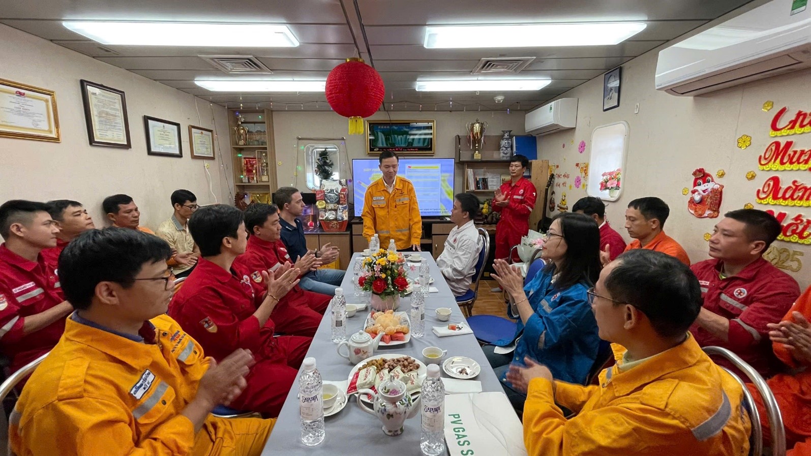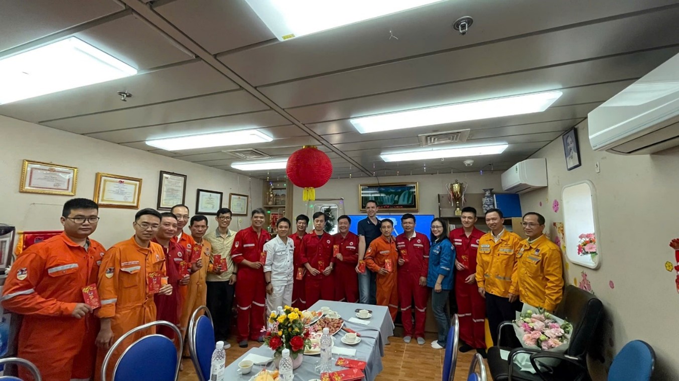 Tại buổi gặp mặt đầu Xuân, lãnh đạo XN Khí và chi nhánh Khí Đông Nam SE đã gửi tới tập thể CBCNV Giàn nén khí RồngNR những lời chúc mừng năm mới tốt đẹp nhất, chúc anh em cùng gia đình một mùa Xuân an khang thịnh vượng, mạnh khỏe và tràn đầy niềm vui. Đoàn cũng đến thăm khu nhà ở, lắng nghe tâm tư, chia sẻ ghi nhận về những khó khăn, vất vả, nỗi nhớ nhà của CBCNV khi đón Tết xa đất liền — những con người thầm lặng nhưng đang góp phần giữ vững nhịp đập của chuỗi công trình khí ngoài khơi.