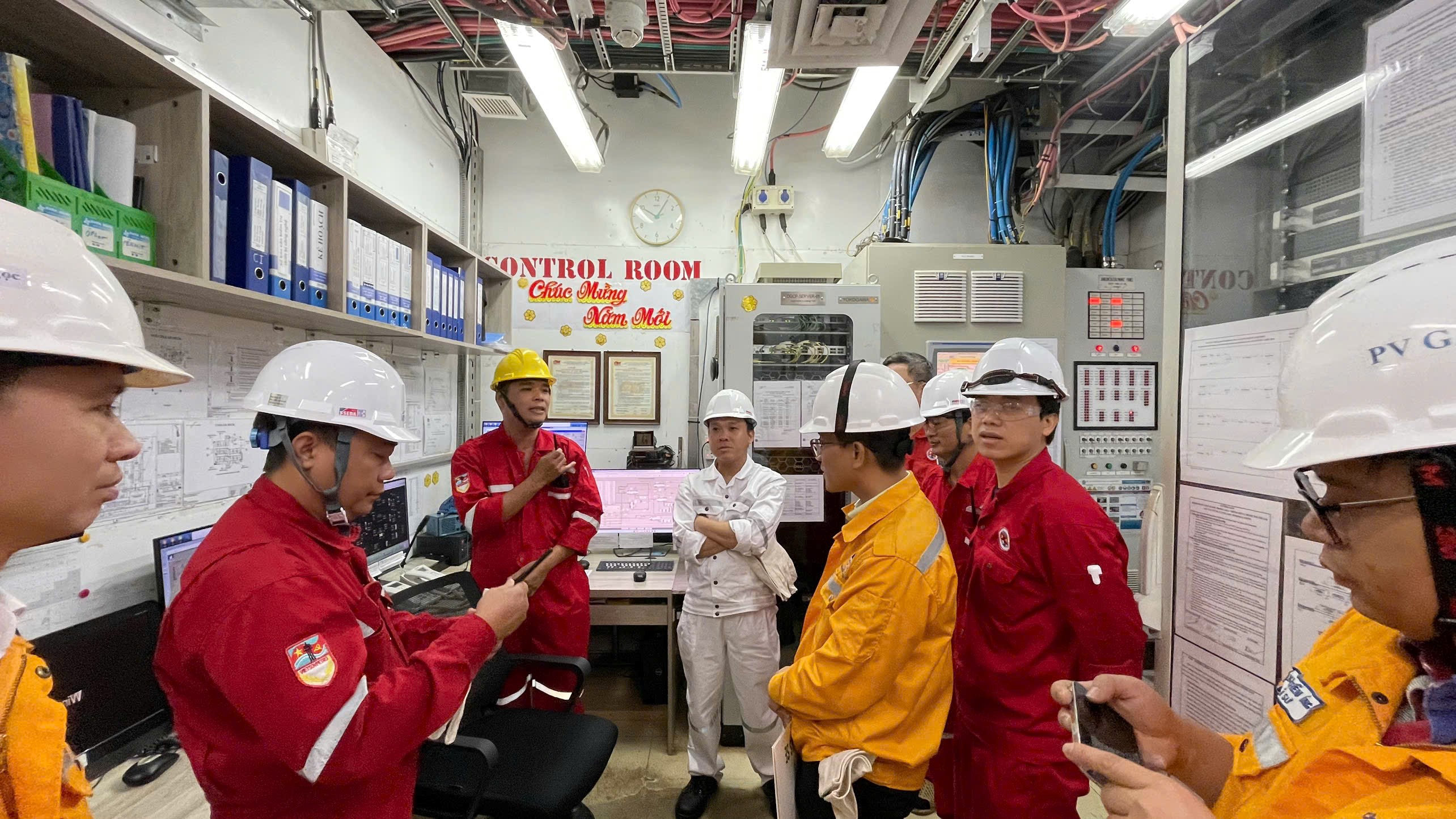 Trong khuôn khổ chuyến thăm, Đoàn đã tham quan các khu vực làm việc chính trên giàn như phòng điều khiển trung tâm, phòng LER, Main Deck, Cooler Deck; đồng thời nghe GNR báo cáo tổng quan về hệ thống công nghệ, tình hình vận hành, công tác an toàn – an ninh cũng như phương án tổ chức trực Tết. Lãnh đạo hai đơn vị đặc biệt nhấn mạnh yêu cầu duy trì kỷ luật vận hành, tuân thủ nghiêm quy trình an toàn, giữ vững sự tập trung cao độ nhằm bảo đảm thiết bị hoạt động ổn định, liên tục và hiệu quả.