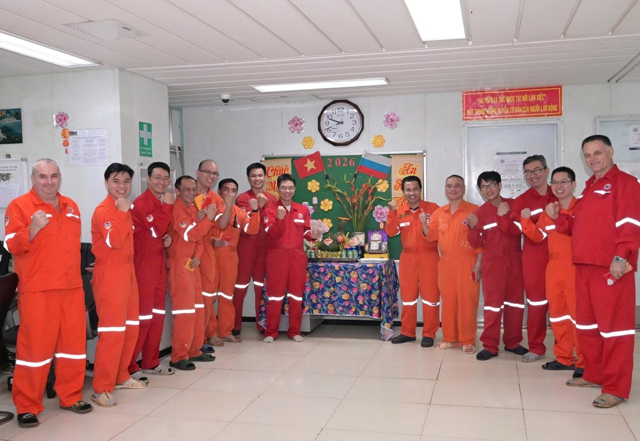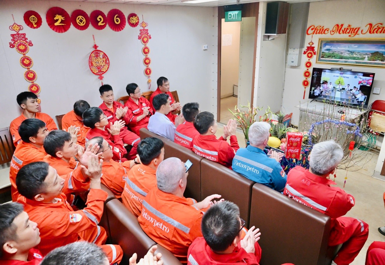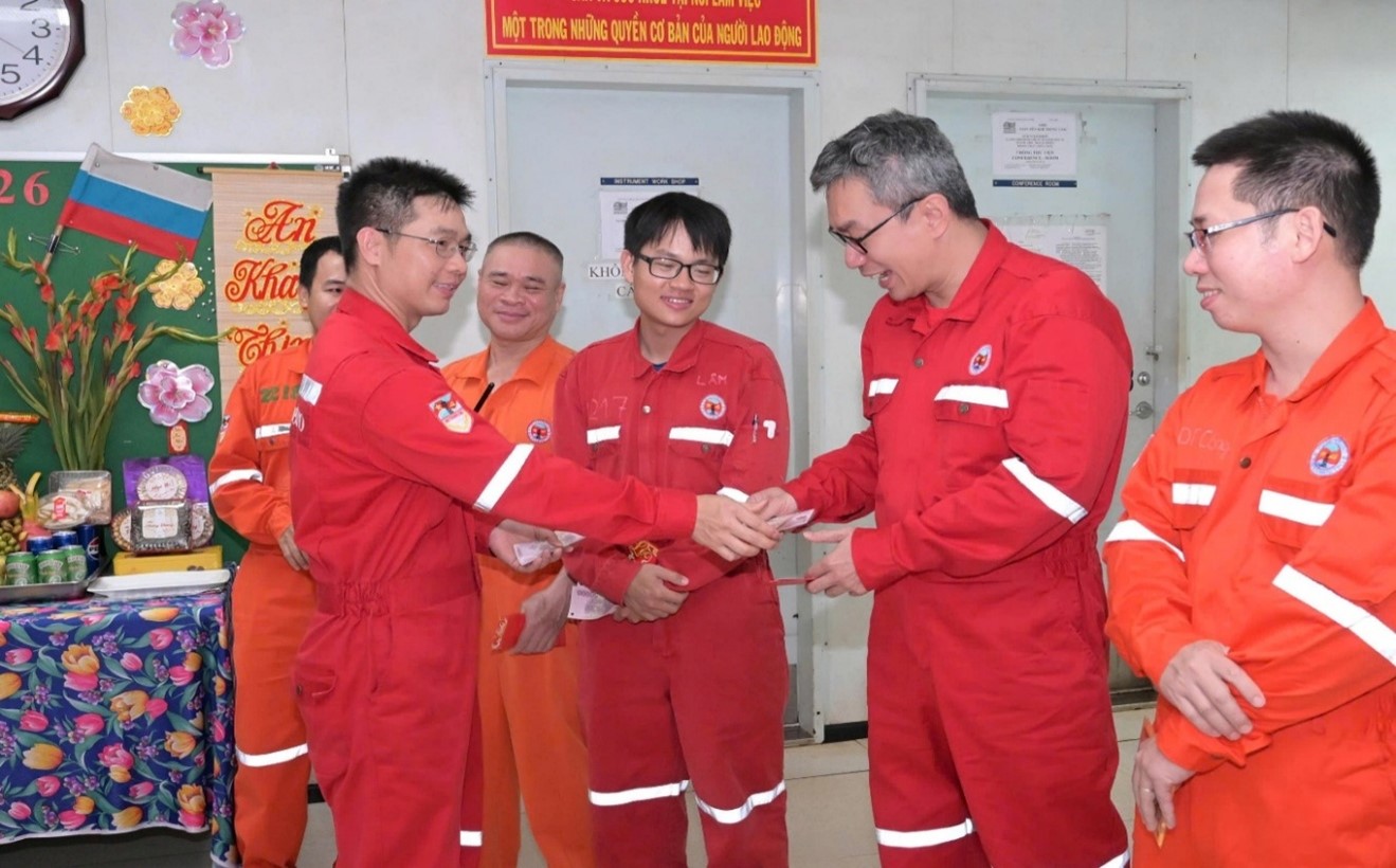 Sáng Mồng 1 Tết, bầu không khí trên giàn rất vui tươi, phấn khởi. Lãnh đạo giàn gửi lời chúc năm mới nhiều sức khỏe, an lành và thành công, trao những phong bao lì xì may mắn đến toàn thể CBCNV.