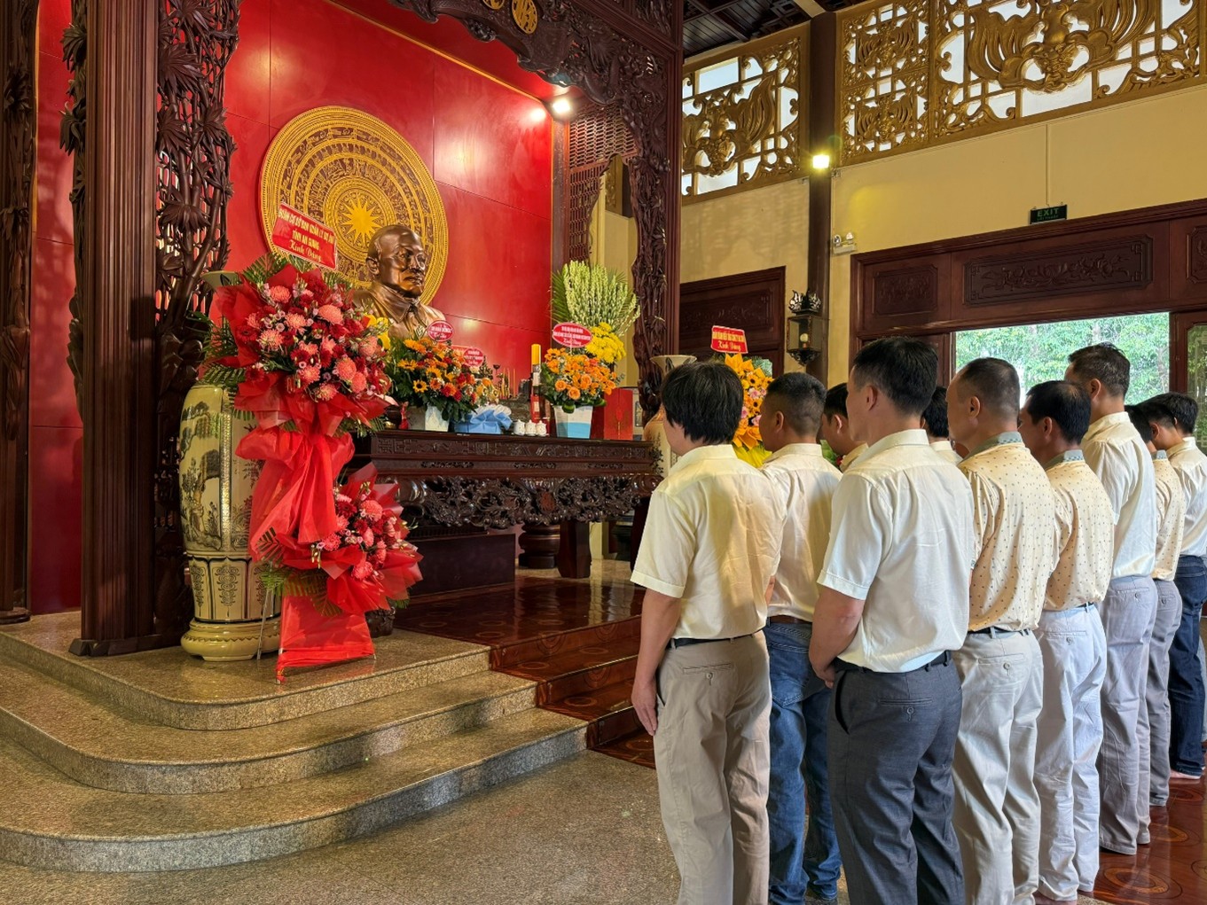 Đoàn chụp hình lưu niệm trước đền thờ Bác Tôn