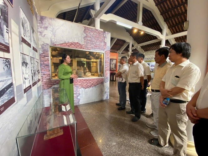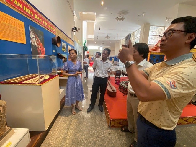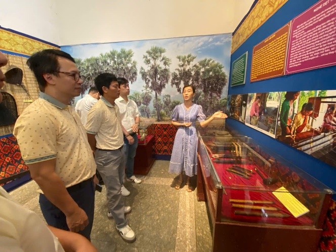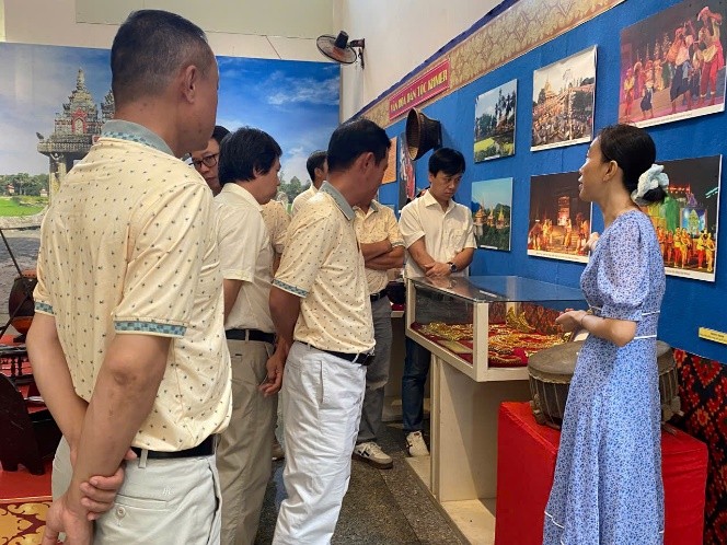 Hình ảnh đoàn đến thăm Bảo tàng An Giang và được nghe giới thiệu các cổ vật, hình ảnh gắn liền với nét văn hoá các dân tộc tại nơi này
