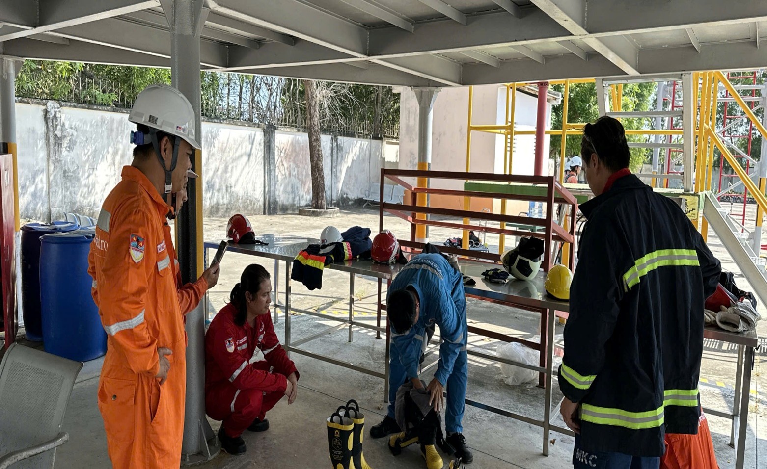 Để chuẩn bị cho hội thao, đội Đội ứng cứu sự cố (Аварийная группа объекта – viết tắt là AGO) XN Khí đã trải qua quá trình huấn luyện bài bản tại Trung tâm Huấn luyện trong điều kiện thời tiết nắng nóng, cường độ cao và yêu cầu kỹ thuật khắt khe. Các nội dung huấn luyện được triển khai sát với thực tế vận hành, từ kiểm tra, sử dụng thiết bị SCBA (Self contained breathing apparatus – Thiết bị thở độc lập), thao tác mặc trang bị bảo hộ đến xử lý các tình huống giả định như rò rỉ khí, cháy nổ, cứu nạn và phối hợp ứng cứu. Mỗi động tác đều được rèn luyện nhiều lần để đảm bảo độ chính xác, tính đồng bộ cao và khả năng phản ứng nhanh khi bước vào tình huống thực tế.
