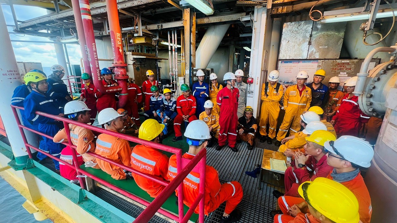 Nhằm đảm bảo an toàn cũng như tiến độ thực hiện công việc, ngay từ đầu năm 2025, các công tác chuẩn bị như lập kế hoạch tài chính, mua sắm vật tư, thuê dịch vụ, các biện pháp tổ chức kỹ thuật (OTM) đã được XN Khí lập chi tiết theo từng hạng mục, bao gồm rà soát và cập nhật danh mục vật tư thiết bị trọng yếu, xây dựng phương án cô lập hệ thống, bố trí sơ đồ nhân sự theo nhóm chức năng (vận hành – turbine/máy nén – cơ khí/piping – điện – ICSS/SCADA – an toàn). Vật tư thiết bị được kiểm soát chặt chẽ từ khâu gom hàng, niêm phong, đánh dấu và phân bố khoa học nhằm tối ưu hiệu quả luồng di chuyển và thi công trên giàn. Hàng ngày, hàng tuần, các nhóm phụ trách dừng giàn đều cập nhật tiến độ, rà soát, họp đề xuất các giải pháp điều hành linh hoạt và liên tục cập nhật báo cáo tình hình sẵn sàng đối giao với những sự thay đổi của máy móc. Song song đó, việc áp dụng các công cụ/phần mềm quản lý tiên tiến cũng như công tác phối hợp giữa XN Khí với các nhà thầu, đơn vị thuộc Vietsovpetro, Công ty Dịch vụ Khí, Công ty Vận chuyển khí Đông Nam Bộ được thực hiện chủ động, hiệu quả, tạo nền tảng cho việc hoàn thành toàn bộ kế hoạch BDSC năm nay.