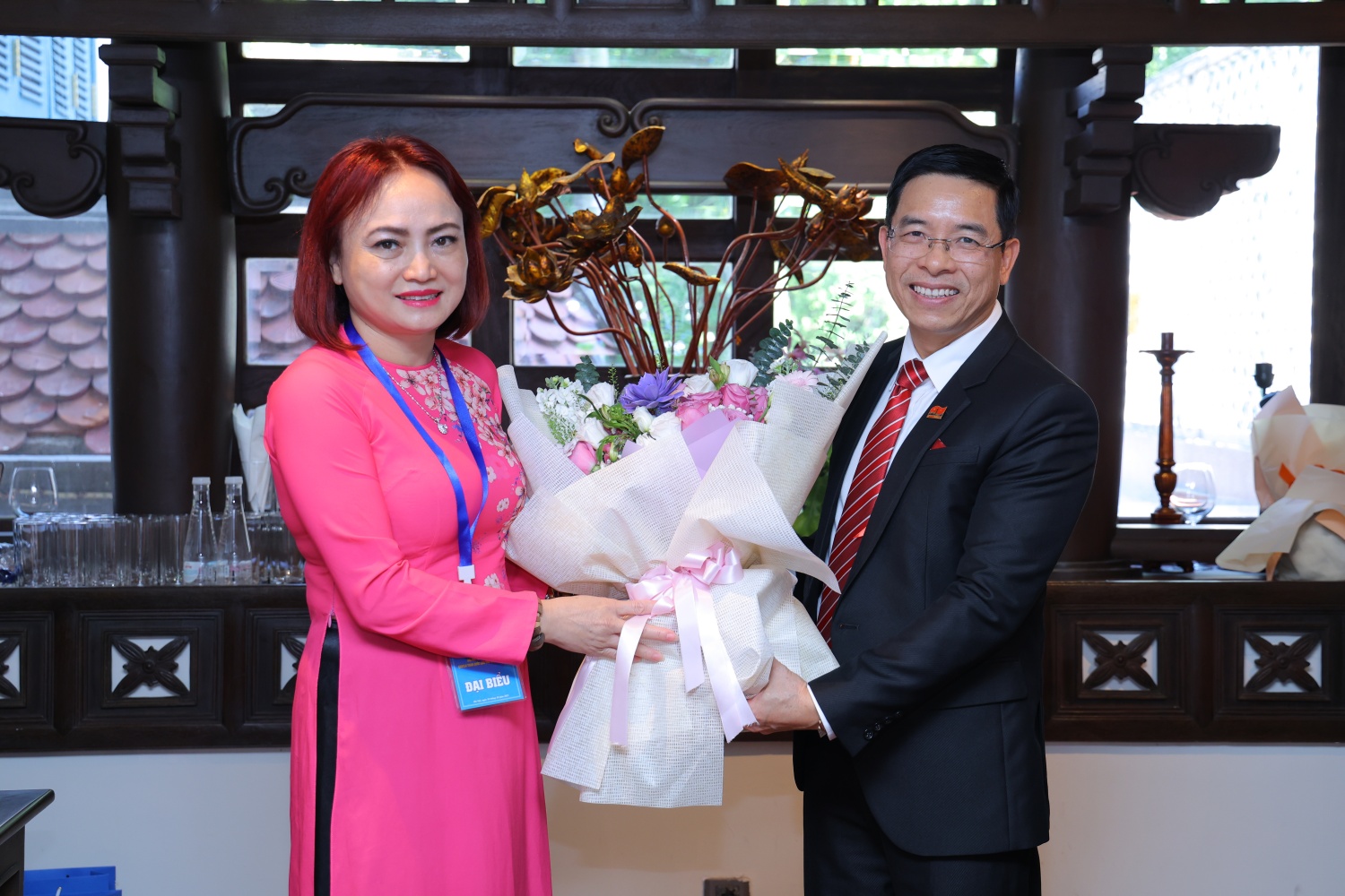 Đồng chí Nghiêm Thùy Lan – Chủ tịch Công đoàn Petrovietnam và đồng chí Nguyễn Mạnh Kha – Phó Chủ tịch Thường trực Công đoàn Petrovietnam trao tặng Giấy chứng nhận và tặng hoa chúc mừng cá nhân điển hình tiên tiến.