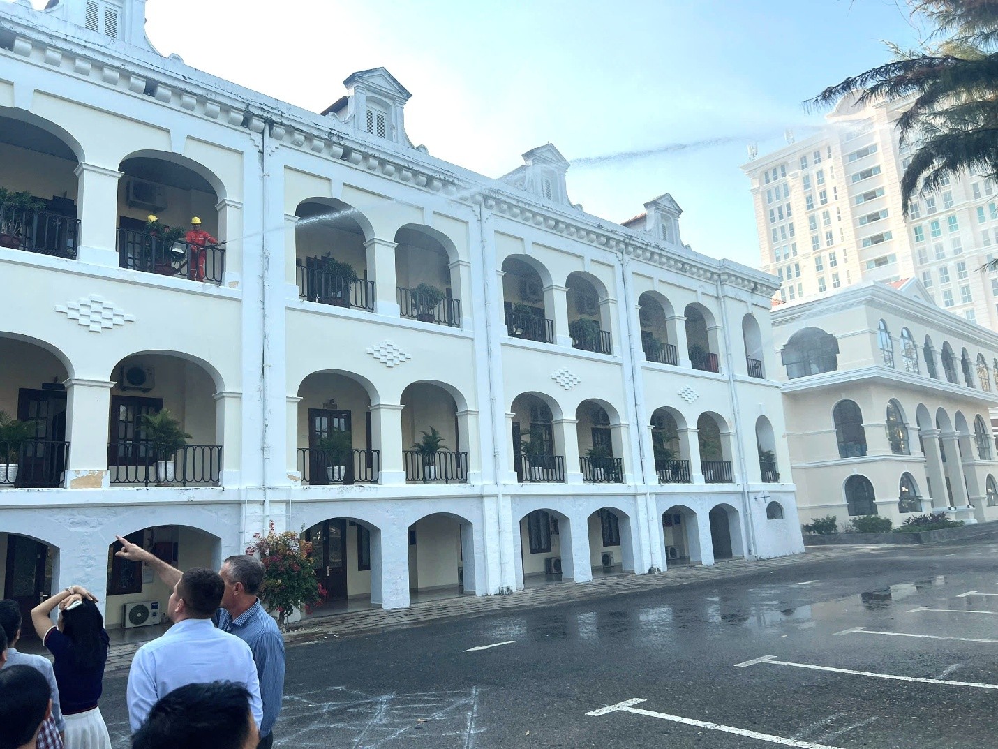 Khi tín hiệu báo cháy được phát đi, toàn bộ CBCNV trong tòa nhà làm việc XN Khí lập tức thực hiện các biện pháp an toàn bao gồm: ngắt nguồn điện tại các phòng, đóng cửa và nhanh chóng di chuyển theo lối thoát hiểm đến khu vực tập trung tại sân trước tòa nhà làm việc A27 XN Khí.